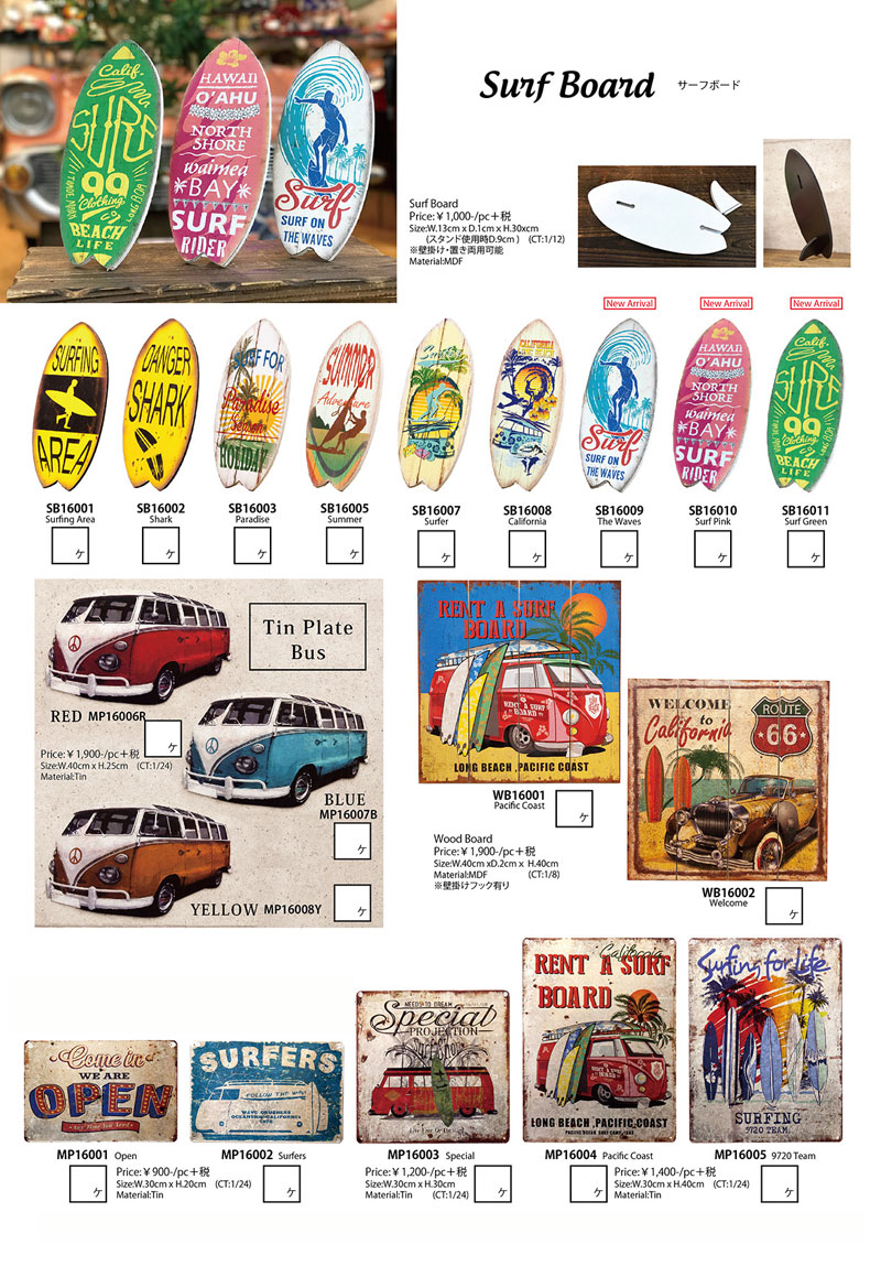 人気のサーフボードデザインのプレートが新柄3種を追加して再入荷致しました。