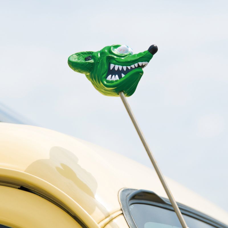 躍動感溢れる WILD なフェイス Rat Fink のインパクトのあるアンテナ トッパーです。