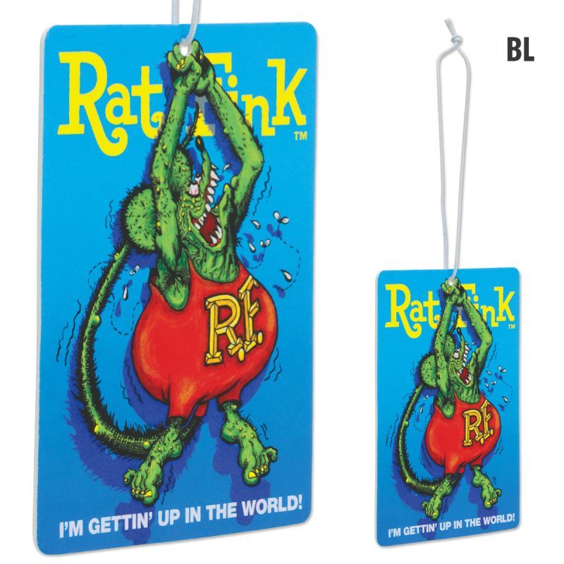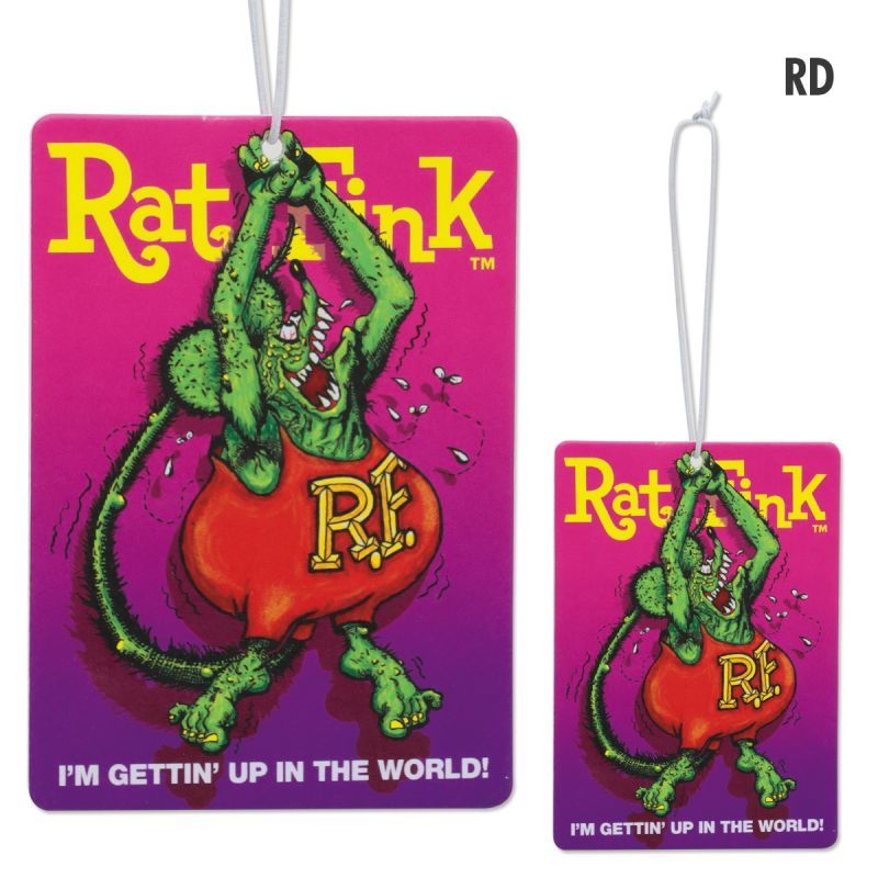 今にも落っこちてしまいそうな Rat Fink のニヤリとさせるデザインのエアーフレッシュナーです。