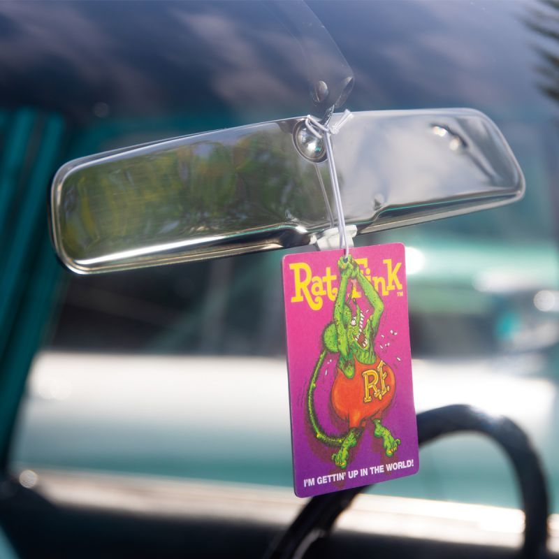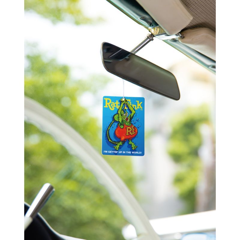 車のルーム ミラーなど、いつも目に入る場所にあると、いつものドライブも Rat Fink のおかげで楽しさ倍増。