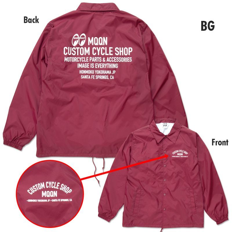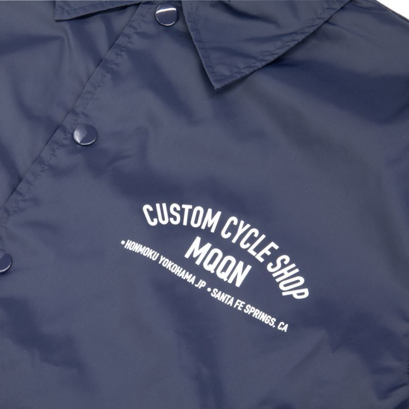 シンプルであり、スマートさを兼ね揃え、どんなスタイルともマッチ出来る、MOON Custom Cycle Shop のコーチ ジャケットです。あえてイラストやアイコンは使わずに、レタリングだけのデザインがメンズでもレディースでも着れるユニセックスなデザインに。
