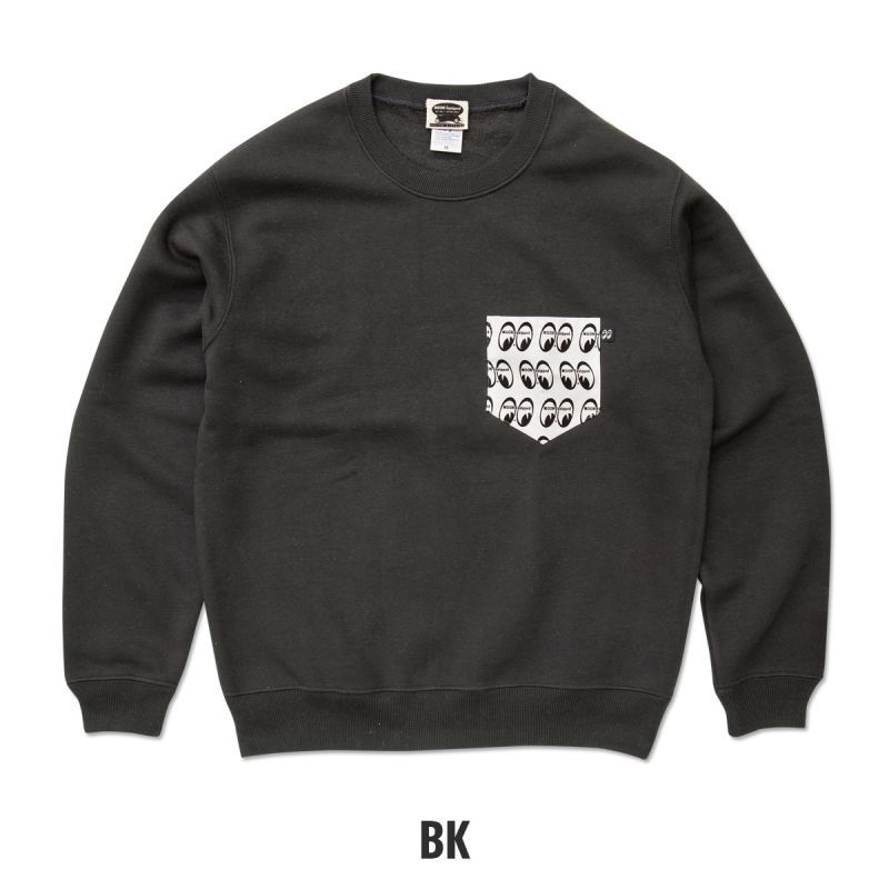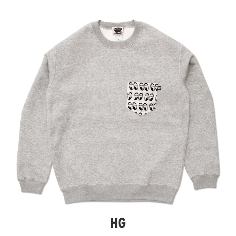 ファブリック ポケットとスウェットの異素材ミックスがスタイリッシュなスウェットです。胸元に MOON Equipped ロゴ パターンのちょっとしたものを入れるのに便利なポケットがついていて、ピスネームのアクセント付き。アクセントのポケットは、しっかりとした厚手のコットン ファブリックを使っているのがこだわりです。