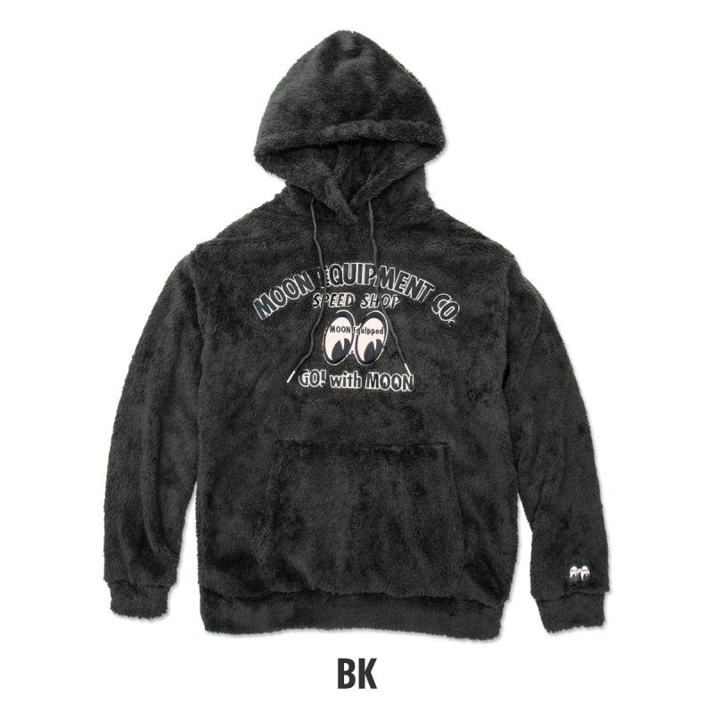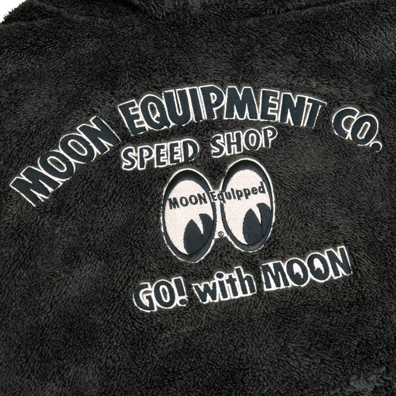 そのやわらかさにずっと包まれていたくなるようなふわふわな着心地のプルオーバー パーカーです。フロントにはボディと合わせたカラーで、大きく MOON EQUIPMENT CO. SPEED SHOP のレタリングに、MOON Equipped アイシェイプ ロゴの刺繍が施されています。さらに、袖口にも MOON Equipped アイシェイプ ロゴの刺繍がワンポイントで入っているのがこだわりです。