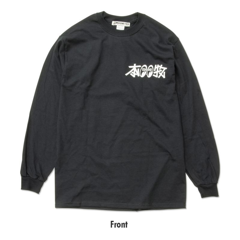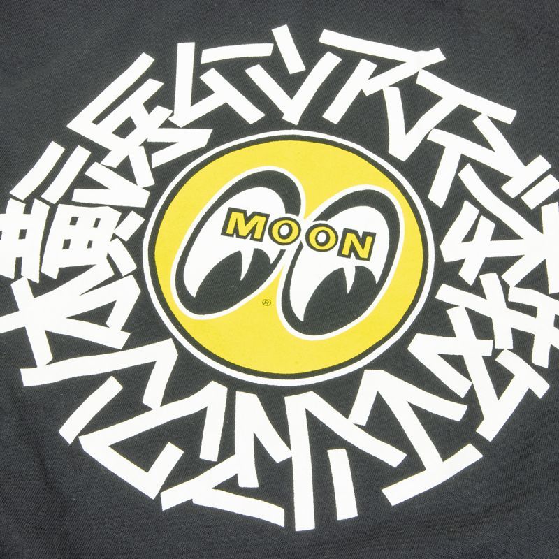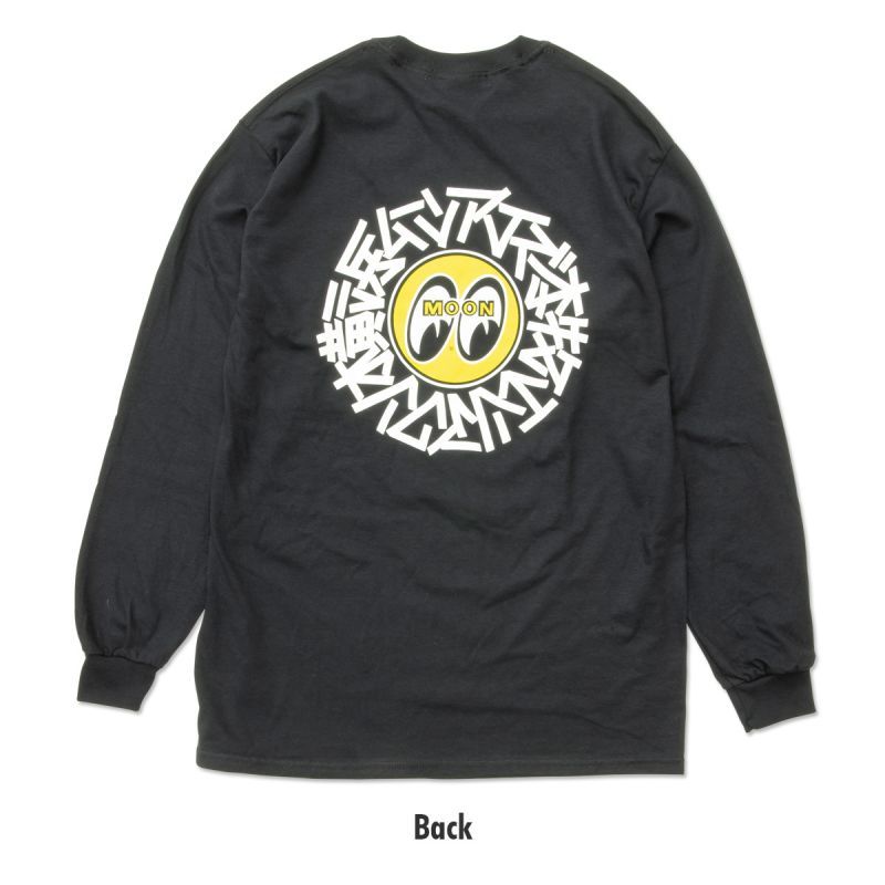 奇抜なフォントでMOONアイボールを囲むようにデザイン した 横浜ムーンアイズ本牧エリアワン。そんなキャッチーなデザインがバックに大胆にプリントされたカジュアルなロングスリーブTシャツです。フロントの胸元には本牧と MOON アイシェイプ ロゴがワンポイントで入ります。
