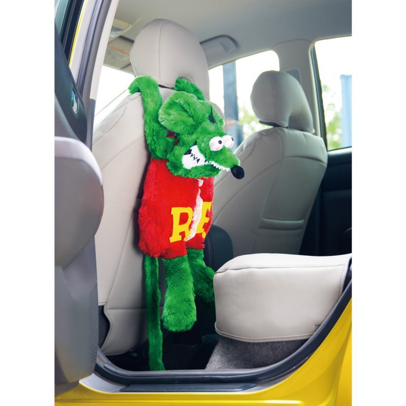 血走って飛び出している目、尖った長い鼻、ギザギザな歯、長ーい尻尾、そしてネズミらしい大きな耳といった Rat Fink の魅力がしっかりと詰まった逸品です!フサフサな Rat Fink の毛並みをイメージし、ネズミとは思えないモフモフ感。一度触るとずっと撫でていたくなるような手触りです。