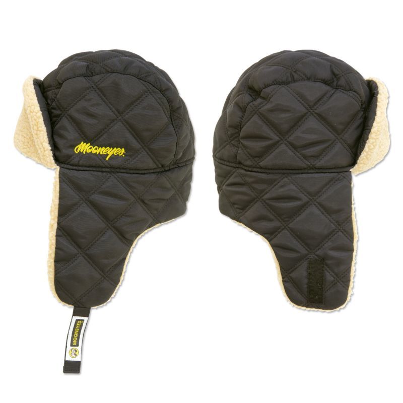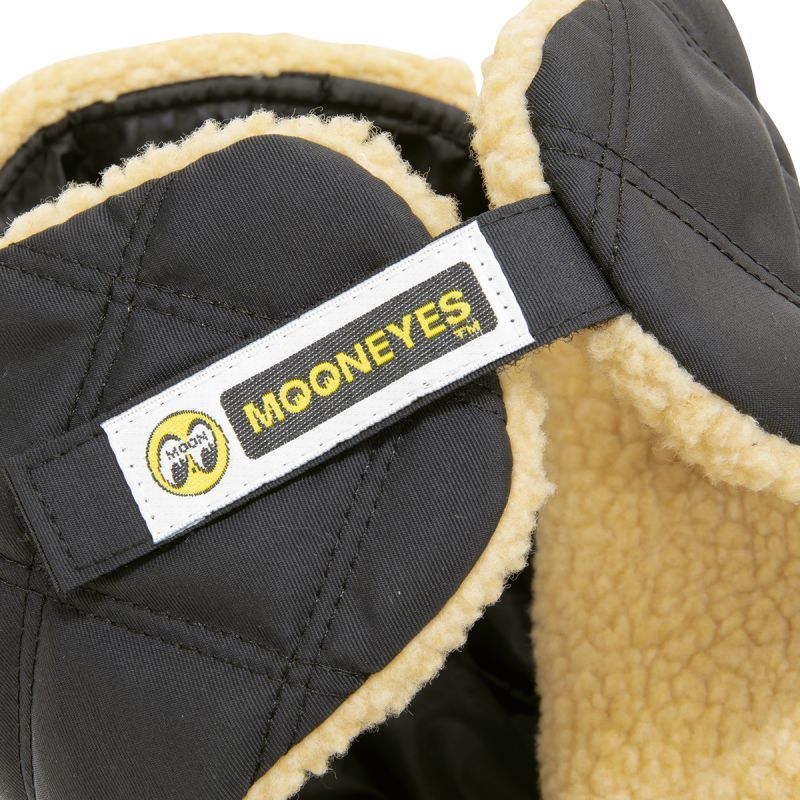 シンプルデザインで、スタイリッシュな Mooneyes ロゴの刺繍が施されていて、さりげなくストラップ部分には MOON アイボール ロゴが入ったネームタグ付き。マジックテープで、イヤーフラップ(耳当て)とフロントのバイザーを上で止めておけるので、2 WAY、3 WAY とシェイプ チェンジを楽しめます。