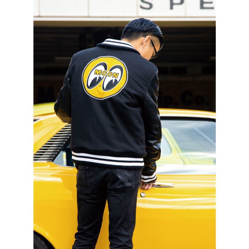 左袖には、MOON アイシェイプ ロゴ、スナップ ボタンは MOON アイボールと、随所まで MOONEYES が詰め込まれた逸品です。