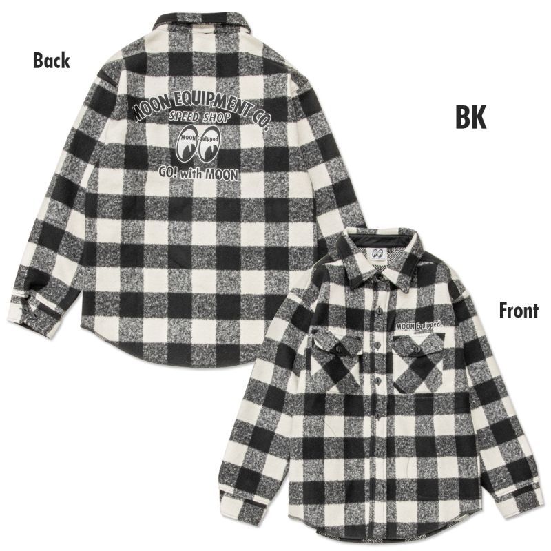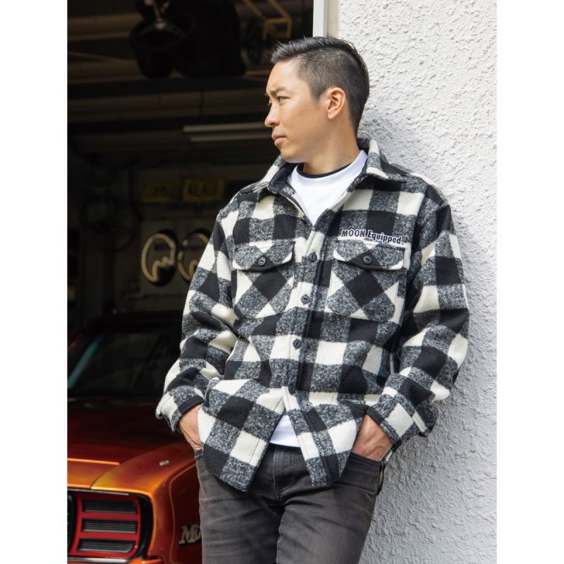 シンプルなデザインで、バックには MOON EQUIPMENT CO. のレタリングとアイシェイプ ロゴが入り、フロントは胸ポケットの上にさりげなく MOON Equipped の刺繍が施されています。カラー展開は、MOONEYES らしいイエローとブラックのスタンダードな 2カラーをご用意いたしました。暗くなりがちな AW コーディネートにチェック パターンがアクセントとなるのが GQQD! 一枚でジャケットとして、冬場はアウターの下に着込むこともできるので、ロング シーズン色々なコーディネートを Enjoy 出来ます!
