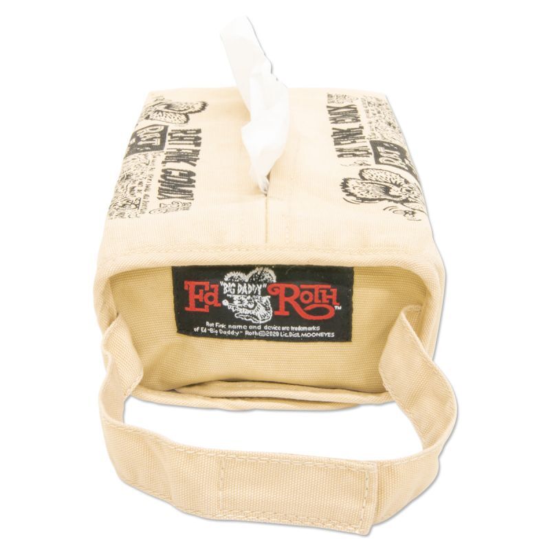 Ed “BIG DADDY” Roth が手がけた希少な Rat Fink Comix Book のワンシーンがモノクロでプリントされたコットン素材のティッシュ カバーです。ナチュラル カラーとモノクロのコミックが OLD COMIC風で味のあるアイテムに!2 種類の違う Comix Book デザインは、今にも飛び出して来そうなエネルギッシュな Rat Fink が描かれています!