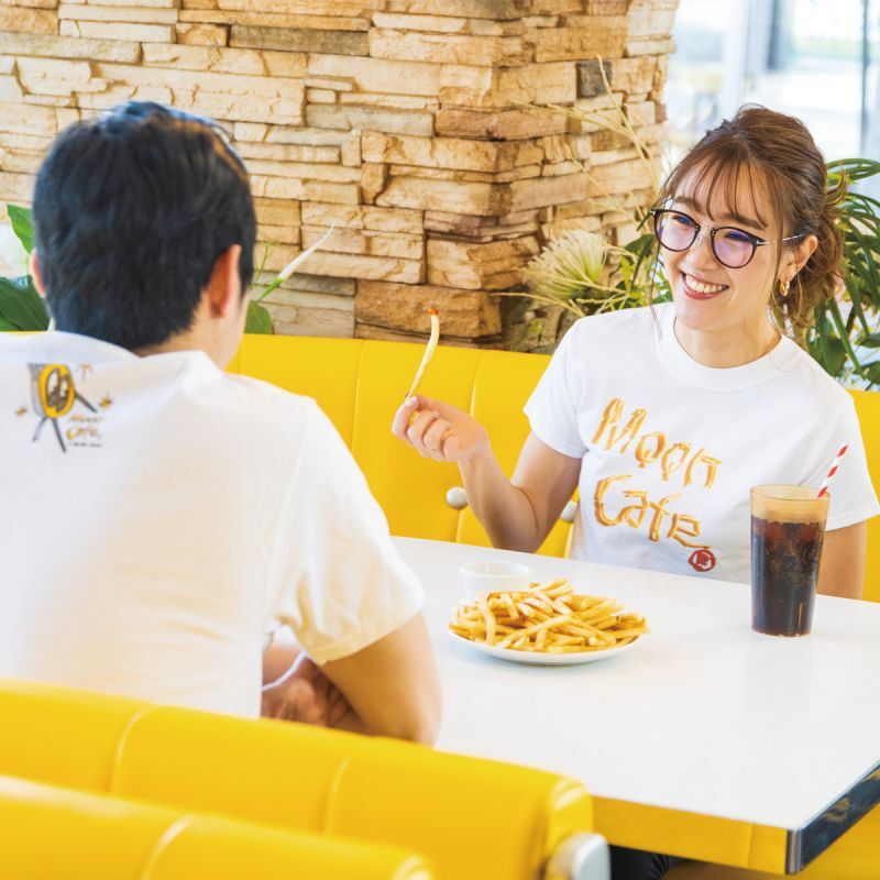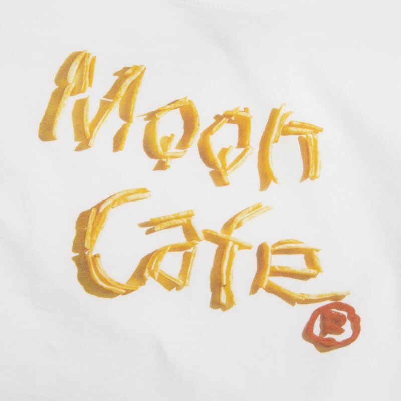 MOON Cafe で提供されているフランチフライを使ってデザインされた遊び心満点なTシャツです。食欲をそそられるようなフレンチフライのフォトに、思わず手が伸びてしまいそうなデザイン。