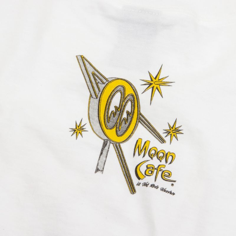 バックにはさりげなく MOON Cafe のネオン ロゴがプリントされています。