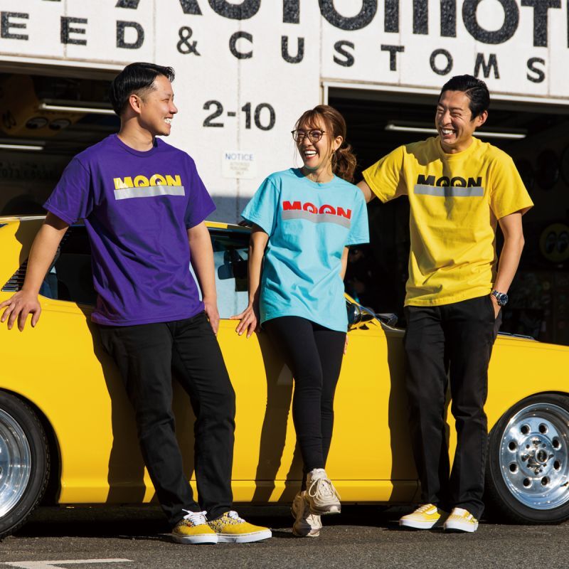 その名の通り、リフレクターのラインがデザインとしてプリントされている Tシャツです。フロントには MOON ロゴとリフレクター ラインが入り、バックにもバーティカルのリフレクター ラインはスタイリッシュに入ります。