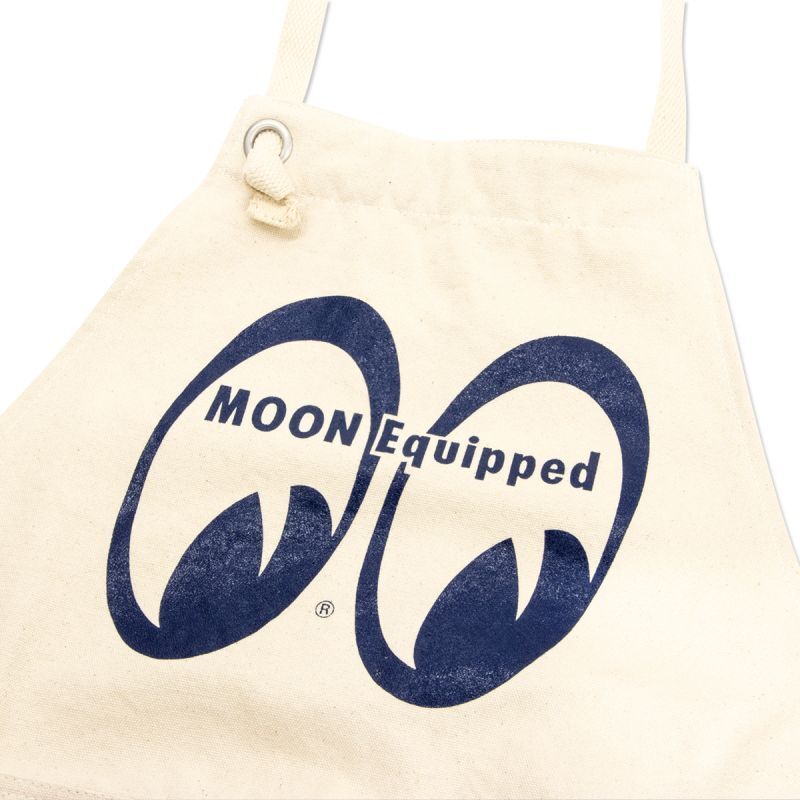 MOON Equipped のアイシェイプ ロゴがフロントに大きく入った、実用性抜群のエプロンです。