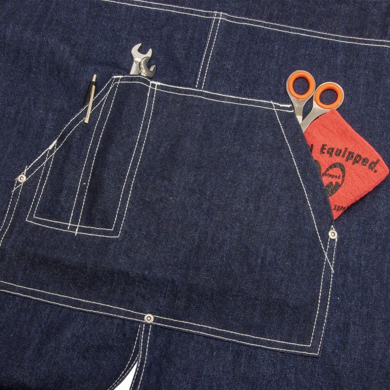キッチンだけではなく、ガーデニングにも最適です。さらにガレージでカスタムやピンストライパーの方にも強い味方!作業中に座ったり、しゃがんだりする際に突っ張ってしまうエプロンですが、こちらのエプロンは裾が中央で割けているので、作業効率UP。そして便利なポケット付き!ワイドなポケットと、ペン差しが付いているので機能性抜群です。