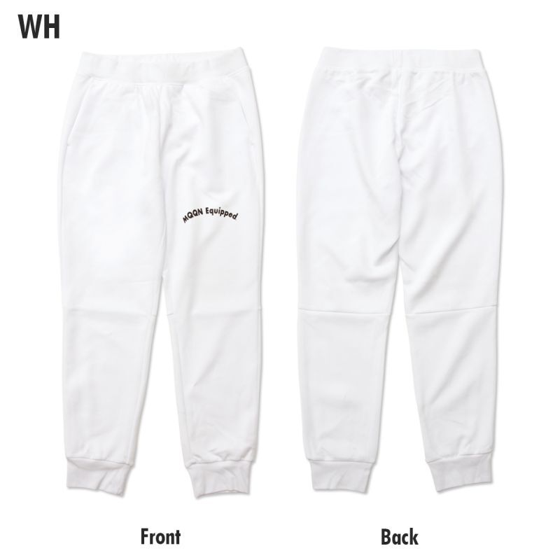 ワークウェア、タウンユース、リラックス タイムとあなたのデイリー スタイルにマッチするオールマイティーなスウェットパンツです。フロントの左脚に MQQN Equipped ロゴがスタイリッシュにアクセントとしてプリントされています。