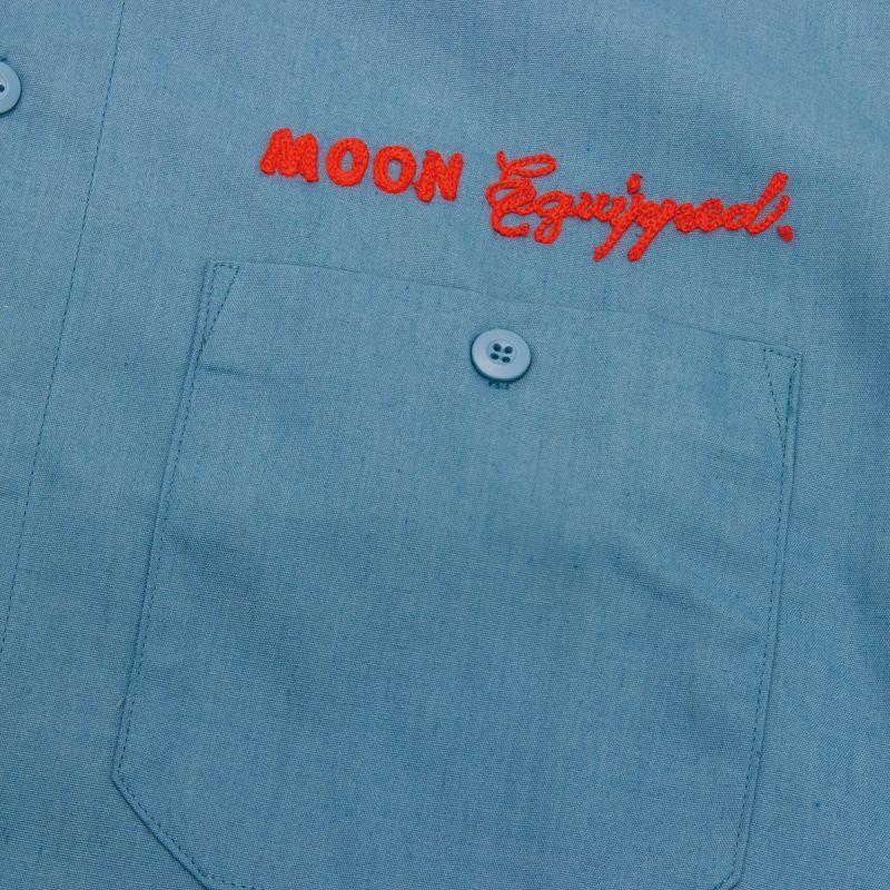 バックにも、MOON Equipped ロゴとアイシェイプが入り、ワークシャツとして着るのはもちろん普段のカジュアル アウトフィットにも最適な一枚です。