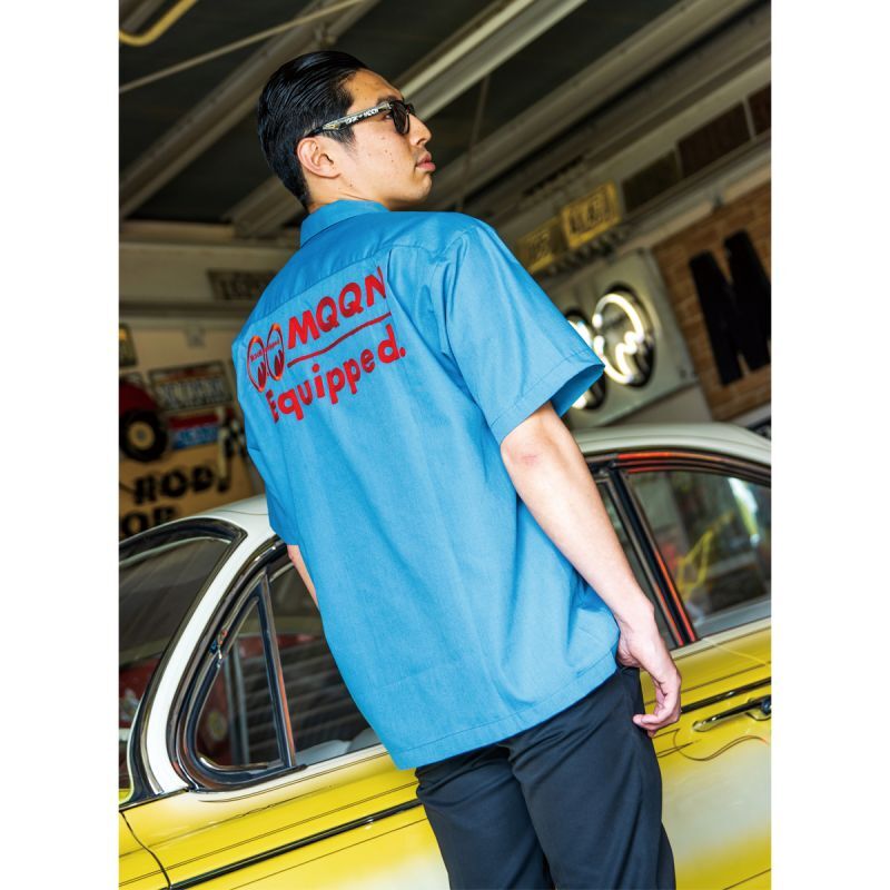 サラッとした軽い着心地で、そのまま一枚で着たり、前を開けて Tシャツと合わせるレイヤード スタイルも GQQD!! あなたの MOONEYES Work Style を決めてください。