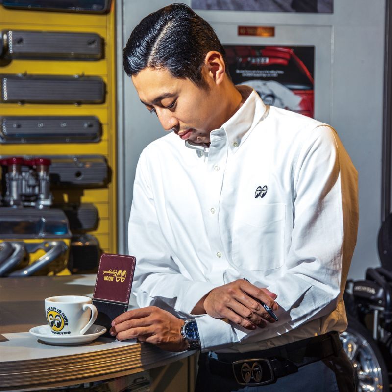 胸ポケットの上に、ワンポイントで MOON Equipped の刺繍が施されたシンプル デザインで普段着としてはもちろん、上品すぎないカジュアル感はセミフォーマルなシーンでも活躍します。