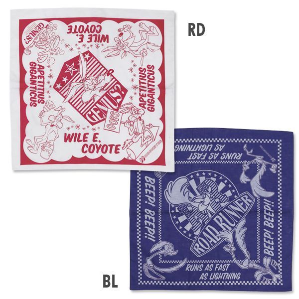ワイリー・コヨーテがプリントされたレッドと、ロード・ランナーがプリントされたブルーの2色をご用意致しました。