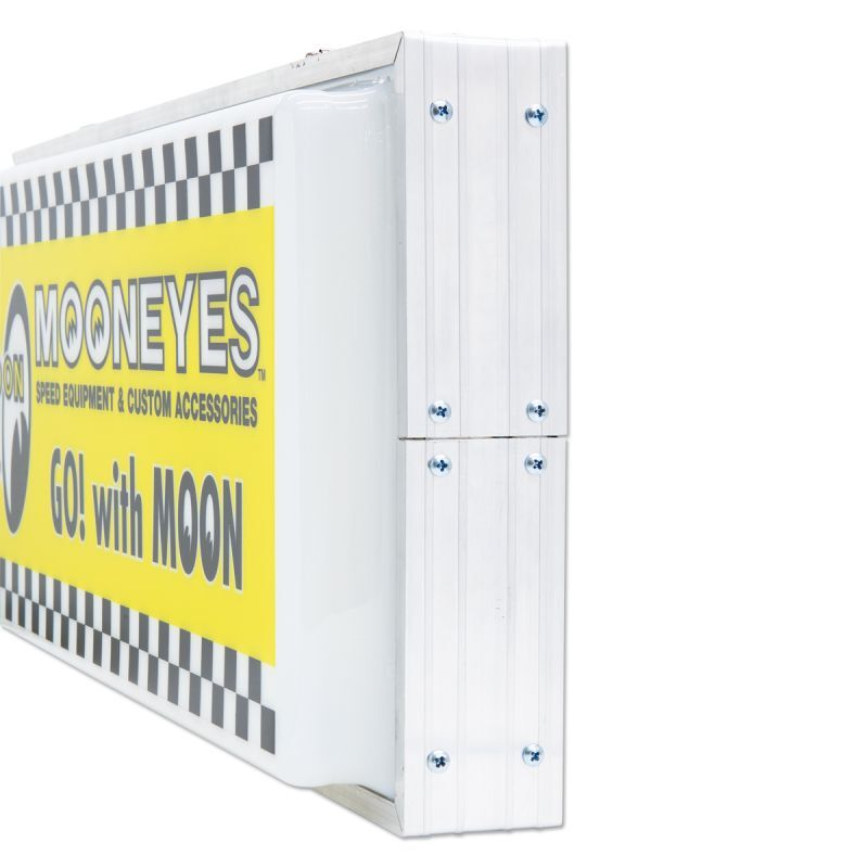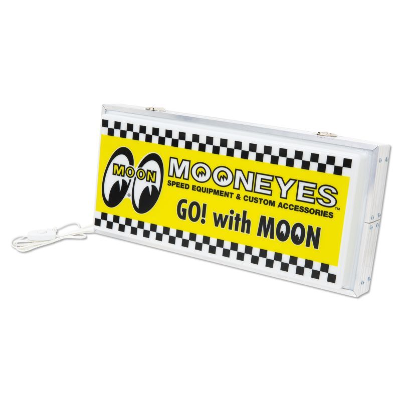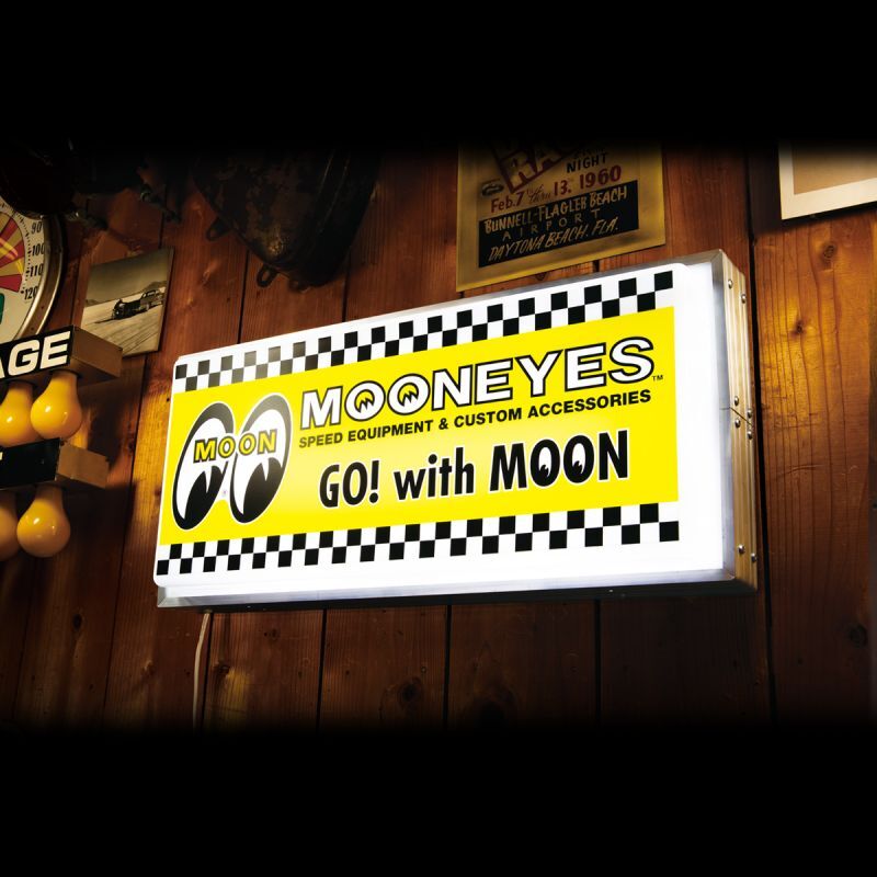 MOON ロゴと、上下に入るドラッグレースなどでも象徴的なチェッカーデザインがシンプルながらも、MOONEYES ブランドのオリジンが詰まってます。