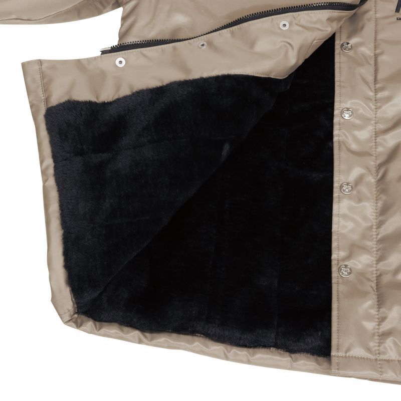 襟の部分のボアは、ジッパーで簡単に取り外すことが可能です。ジャケットのボディーの内側がボアになっているので、寒い日には着心地抜群で、防寒対策もこれで OK!さらに、何かと便利な内ポケットも付きます。そして、ジャケットの内側には、肩、肘、背中、胸と4箇所にパッドポケットも付いているので、バイクでハイウェイを疾走するときは安全面を考慮して、バイカーのためにカスタマイズできます!