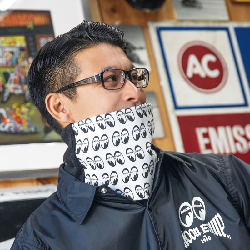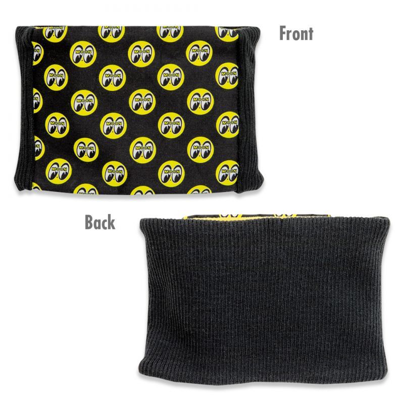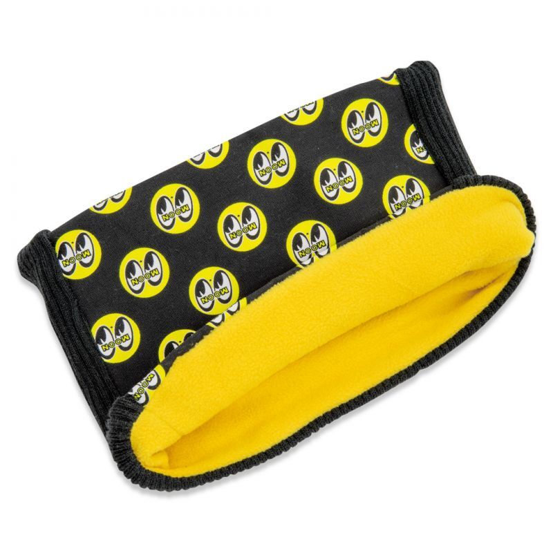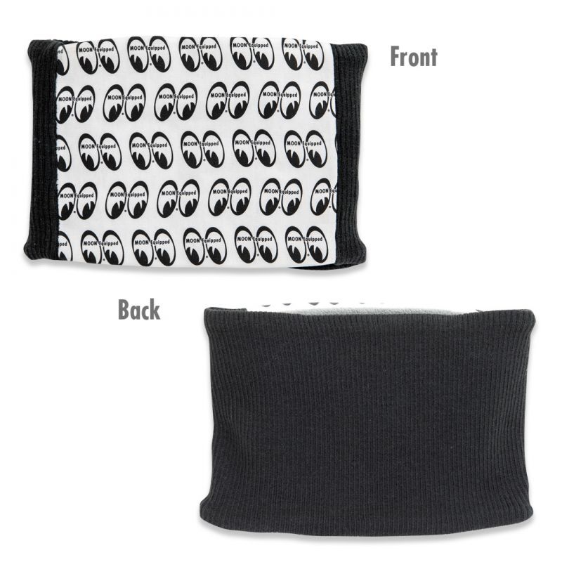 フロントは、コットン素材のMOON アイボールパターン、バックは伸縮性のあるニット素材の異素材ミックス。内側は表のブラックとコントラストになるイエロー カラーで、フリース素材だからこそ、保温性も高く、オープン フェイス ヘルメットなどでは必需品!