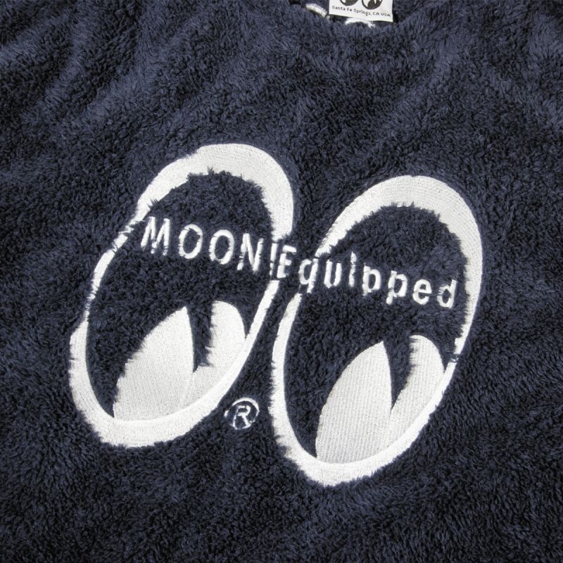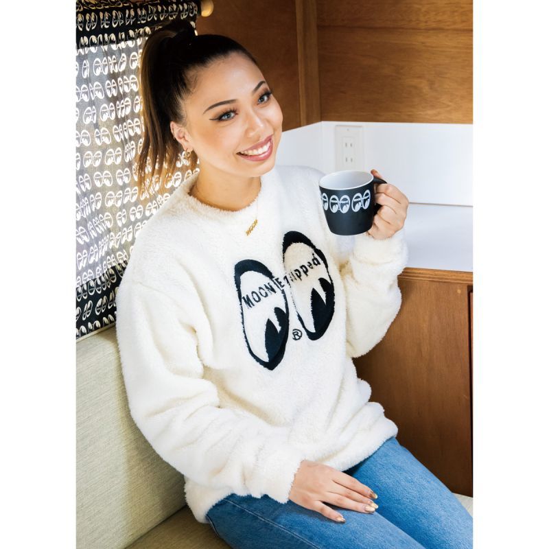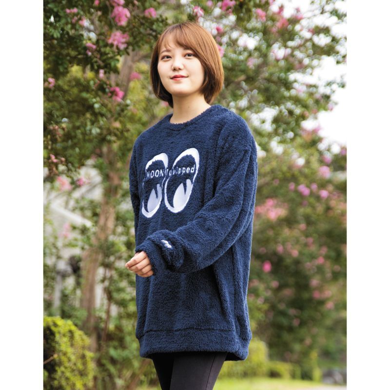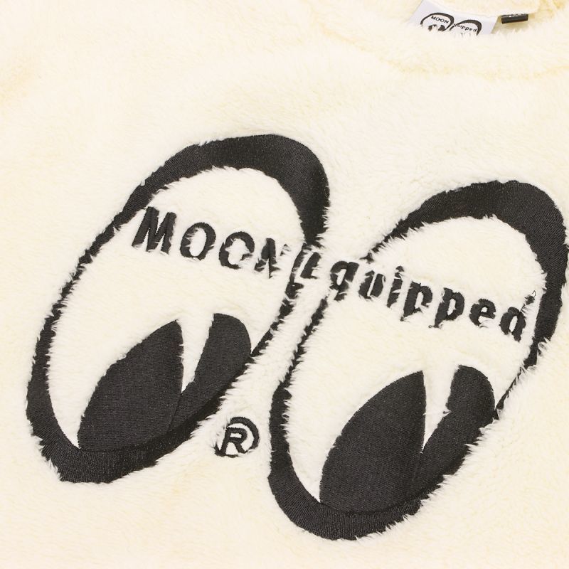 一度触れば、たちまち虜になりそうなくらいスーパーソフトな肌触りで、軽やかなシェルパ フリース スウェットです。フロント、バックの首元と袖のデザインはすべて刺繍で施しています。