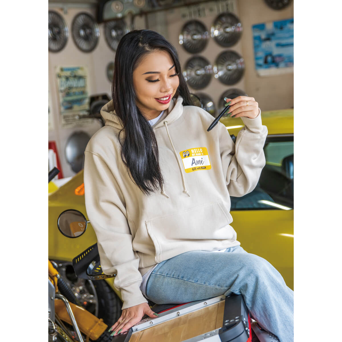 言葉が交わせなくても名前は伝えられる、世界に一つだけのプルオーバー パーカー。フロントのネームシール プリントには、ペンで好きな名前を書けるあなたのオンリーワンな一着に!