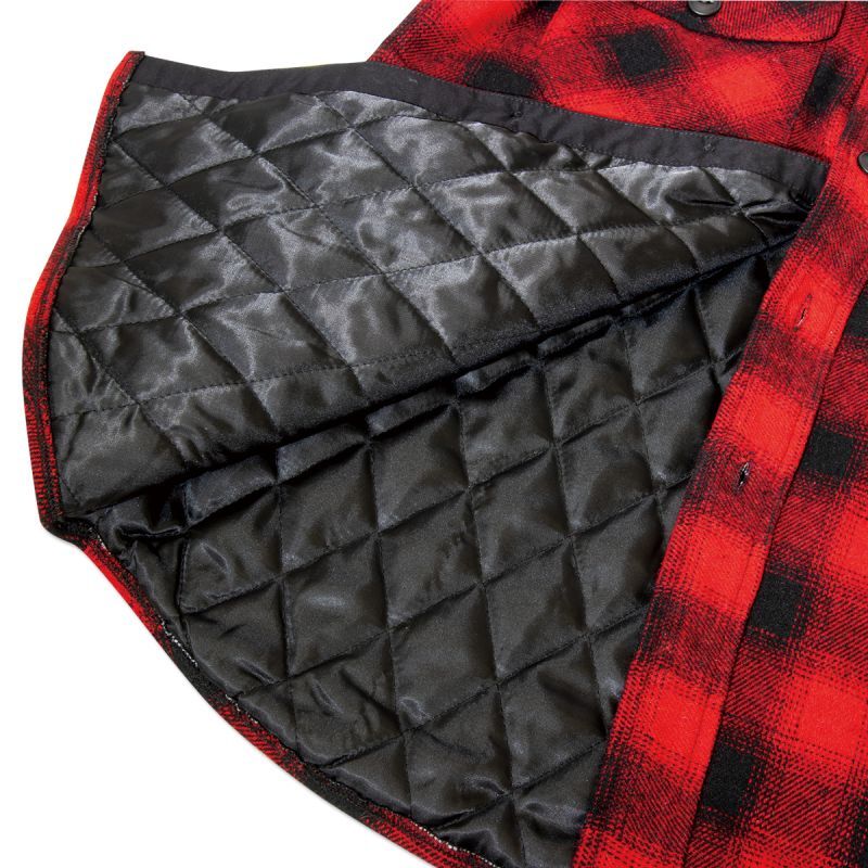 シンプルなデザインで、ロゴデザインは全て刺繍になっています。一見シャツに見えながらも、ジャケットなので、両サイドにポケットがあり、内側はキルティング仕様で、暖かさをキープ。