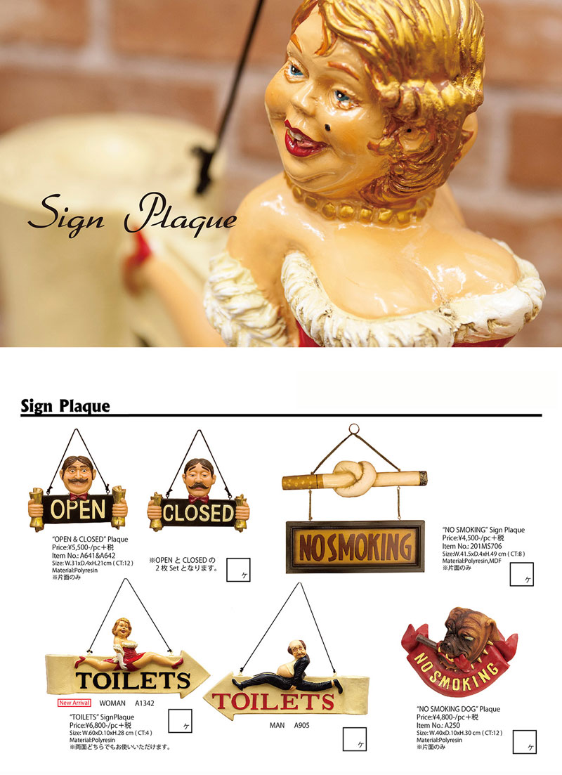 新商品はユーモラスな紳士と淑女がTOILETへと案内してくれるサインプラッケです。