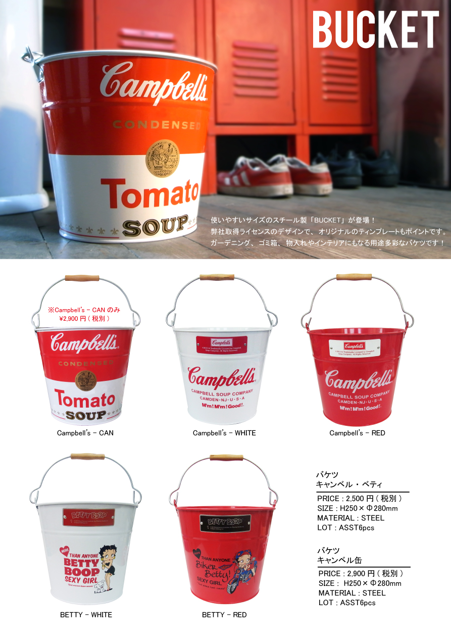 弊社取得ライセンスの、Campbell Soup (キャンベルスープ)、Betty Boop (ベティ・ブープ)など人気のデザインで、