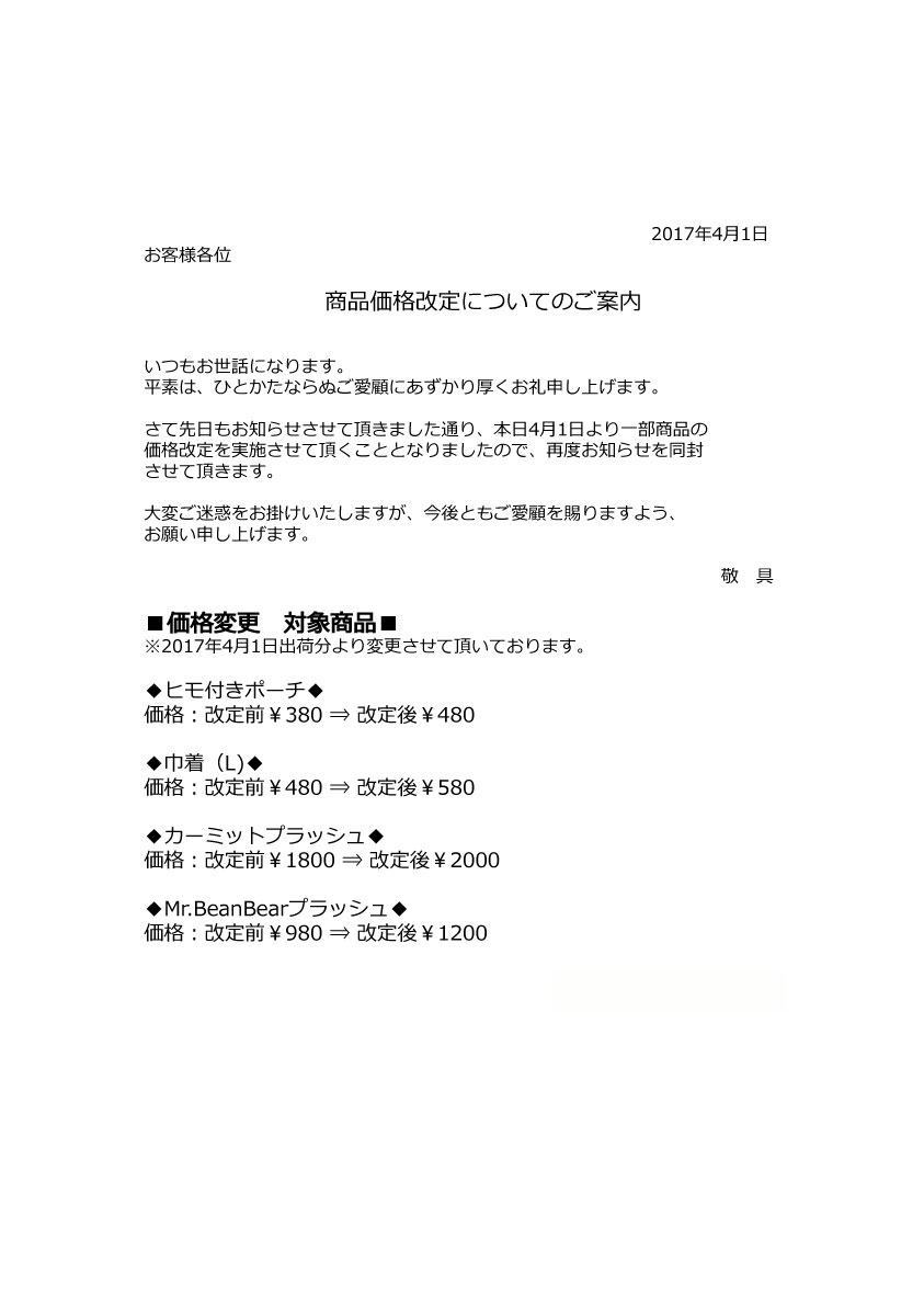 価格改定も併せてご確認の上、ご注文お願い致します。
