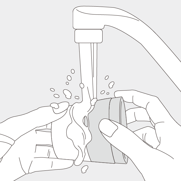 - 1.容器全体を十分に水でぬらしながら、本体とフタをまわします。