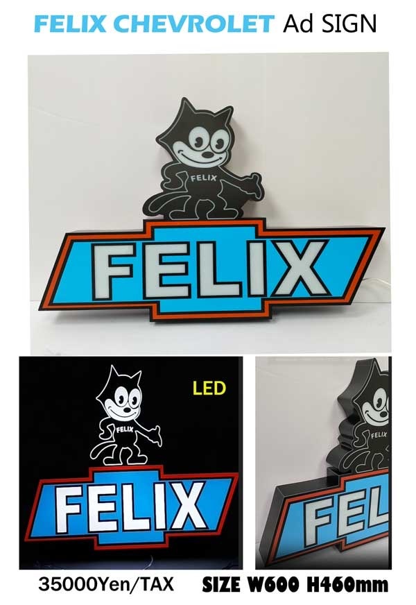 立体感のある発光デザインで視認性が高く、 “FELIX CHEVROLET”のシルエットがLAな雰囲気を演出します。