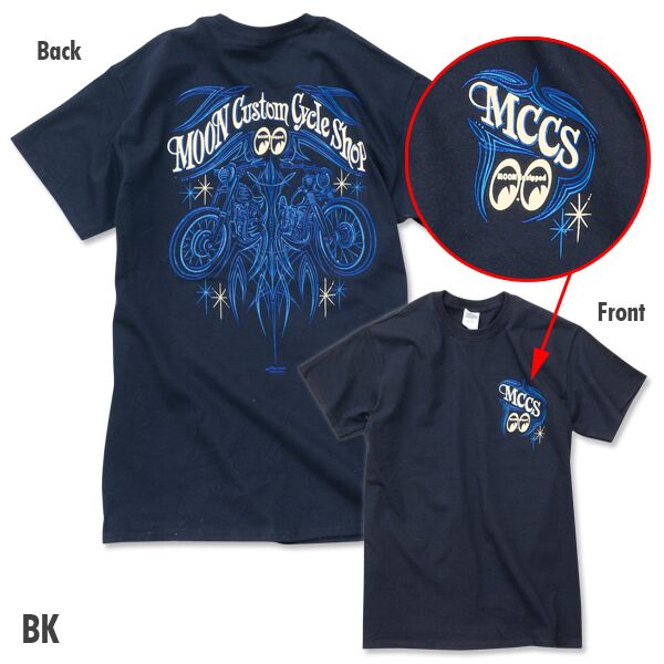 ワイルドマン石井デザインの MOON CUSTOM CYCLE SHOP Tシャツです。