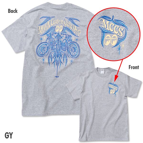 フロントには、ワンポイントで ピンストライプで装飾した MCCS のレタリングと MOON Equipped ロゴをプリントしました。