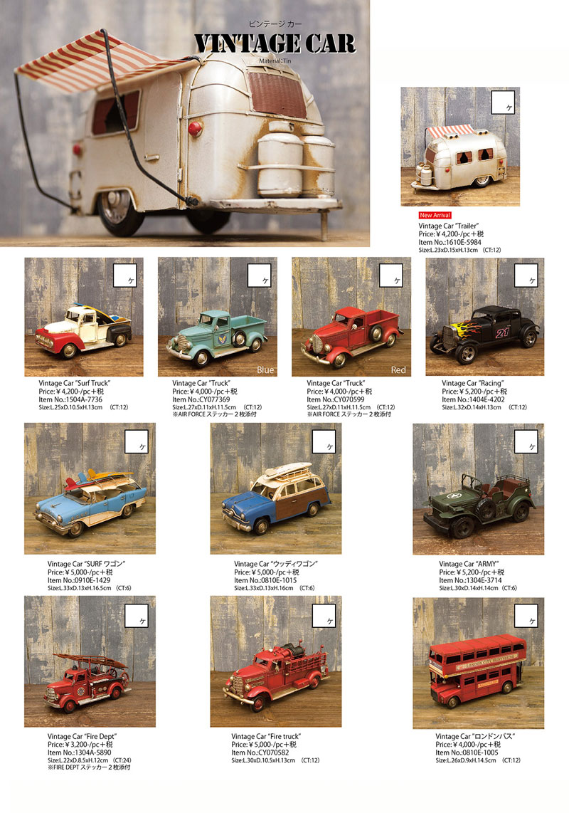 ブリキの素朴感が人気のヴィンテージカーシリーズが新商品を追加して再入荷致しました!