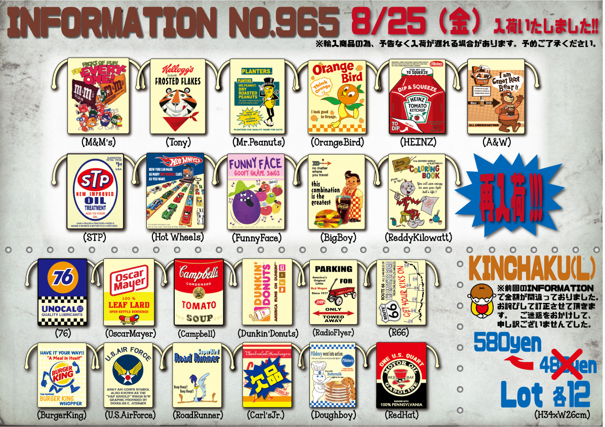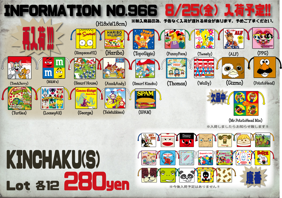 人気のキャラクターアイテム各種再入荷します!