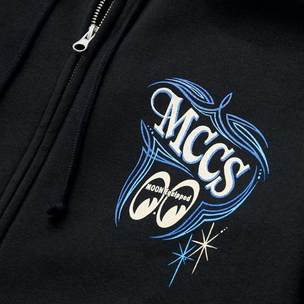 フロントには、ワンポイントで ピンストライプで装飾した MCCS のレタリングと MOON Equipped ロゴをプリントしました。