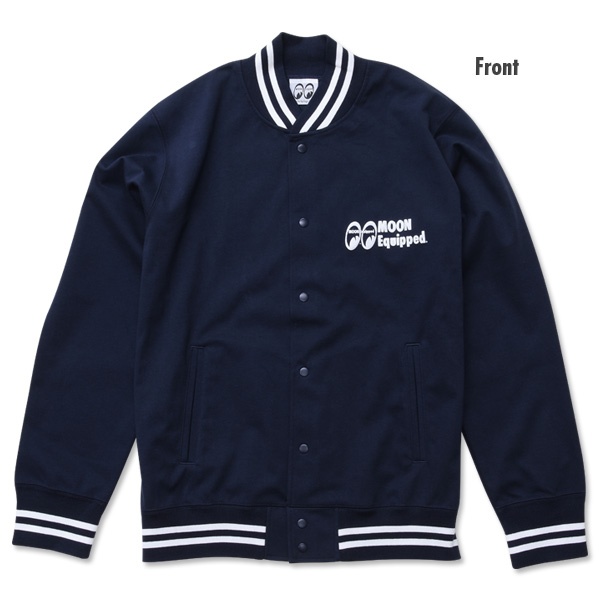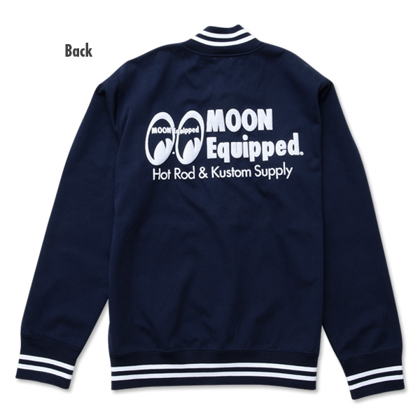 胸元とバックに “MOON Equipped” ロゴと”MOON Equipped” のレタリングを施したスタジアム ジャケットです。