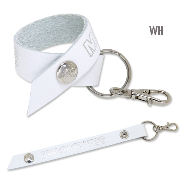 柔らかなレザー部分には、上品なシルバープリントで MQQNEYES ロゴが入ります。