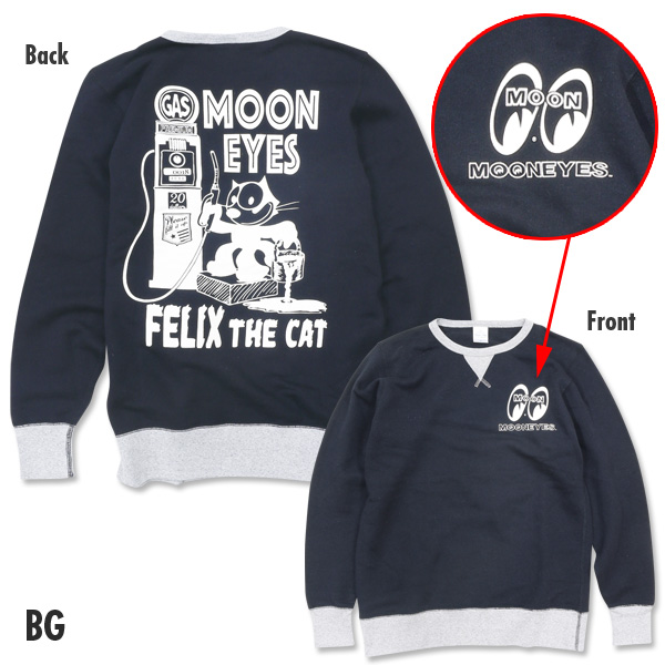 GAS STATION で忙しく働く FELIX をバックに大きくプリントした優しい肌触りのスウェットシャツです。