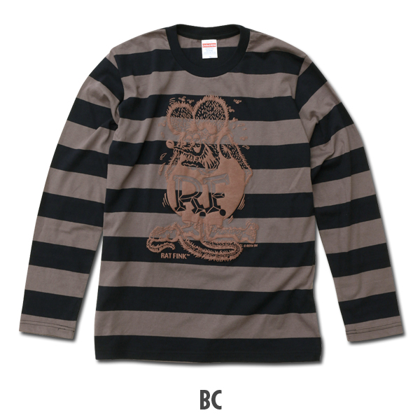 フロント胸元にスタンディング ラットフィンクを大きくプリントした、ボーダー ロングスリーブ Tシャツです。