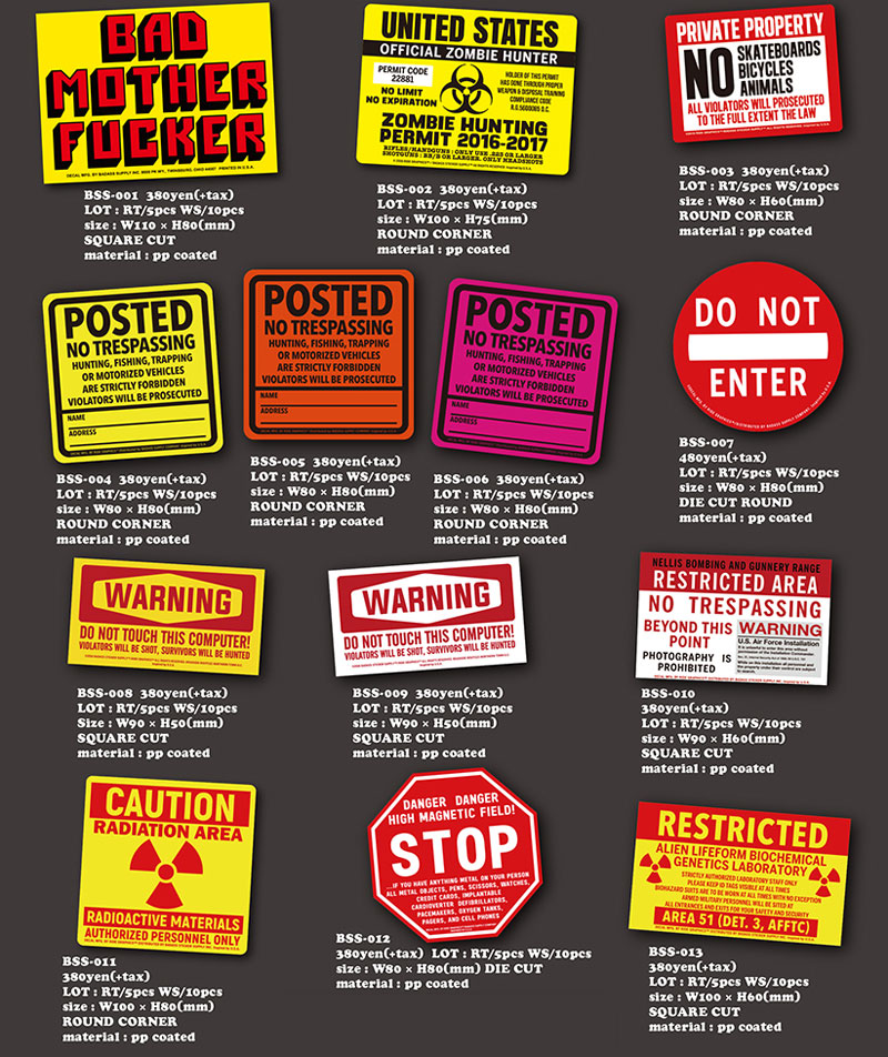 アメリカの警告ボードやメッセージにインスパイアされて誕生したステッカーのご紹介です!