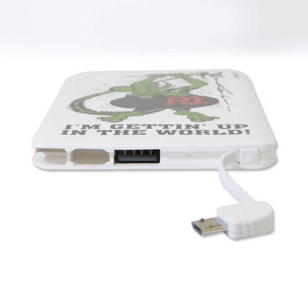 リチウムイオンポリマー電池式の緊急用 USB 出力充電器です。