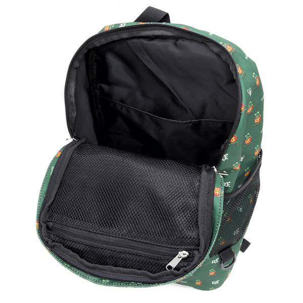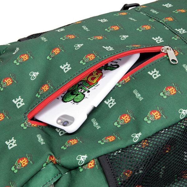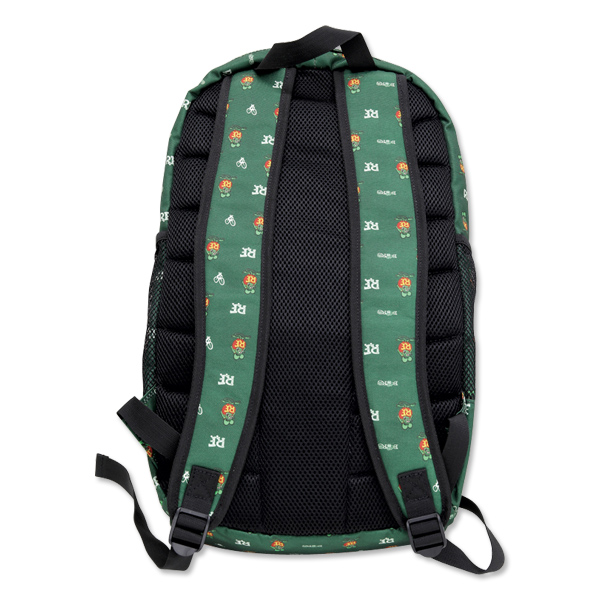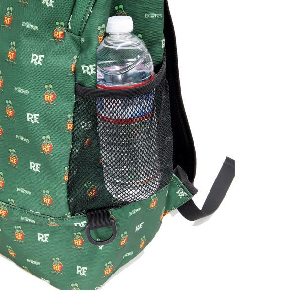 総柄 スタンディング Rat Fink と RF ロゴが散りばめられたバックパックです。