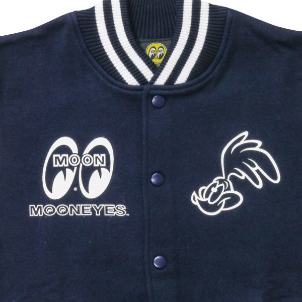 フロントには、MOONEYES ロゴとロード・ランナーを左右の胸部分にプリントしました。