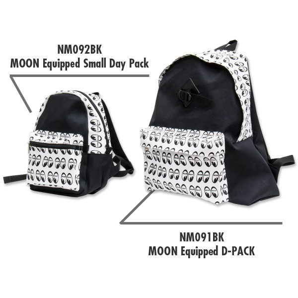 総柄の MOON Equipped のロゴ、ブラックを基調としたシンプル デザインのデイパック (リュックサック) が登場。
