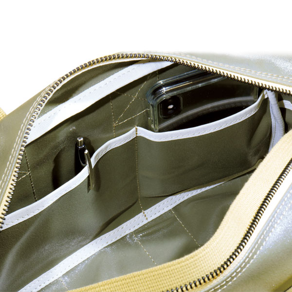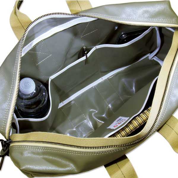 バッグの内側には、前面に3つのオーガナイズ ポケットと、後面にA4ファイルやノート パソコンなどが収納できるポケットが装備。