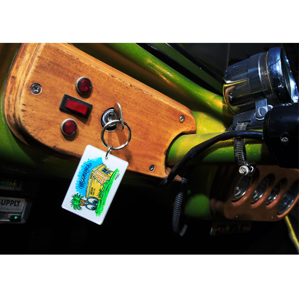 カリフォルニアの Santa Fe Springs にあるMOONEYES USA の外観が Wildman石井によって、描かれたキー リングです。